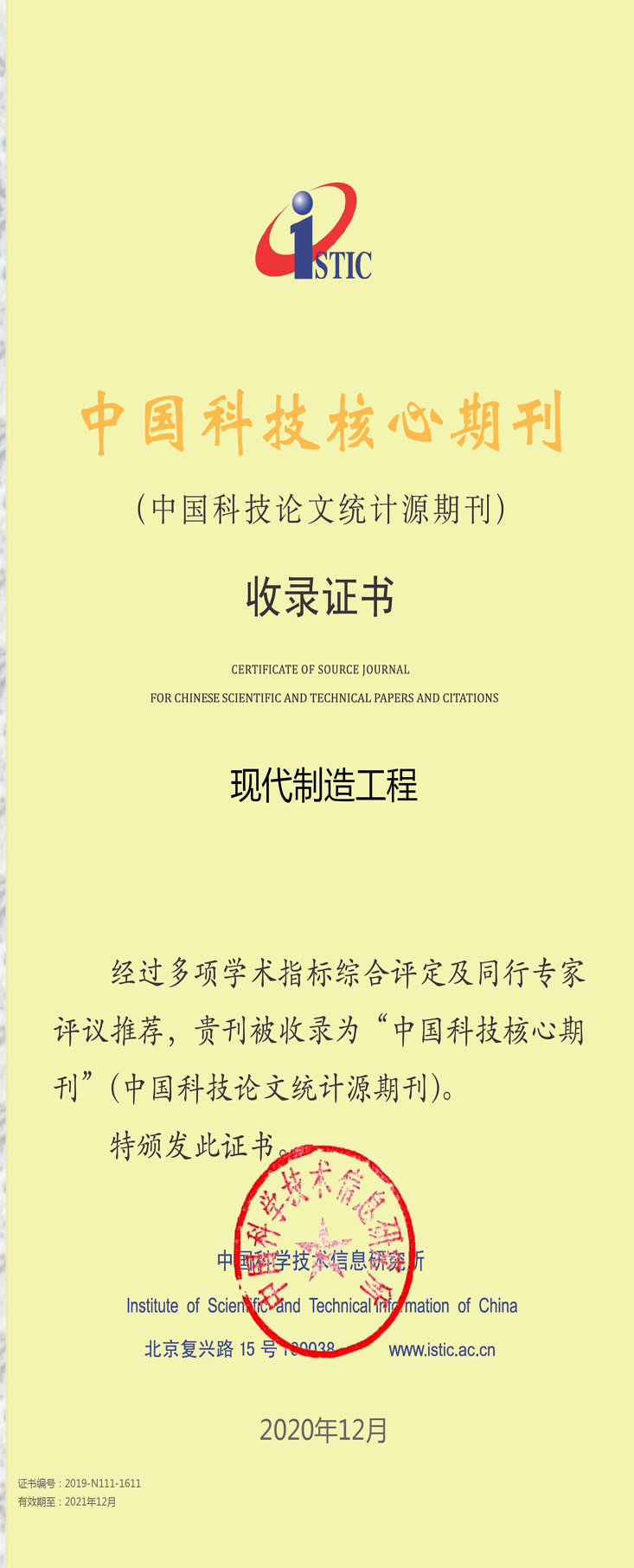 经多项学术指标综合评定及同行专家评议推荐,《现代制造工程》再次被“中国科技核心期刊”(中国科技论文统计源期刊)收录。